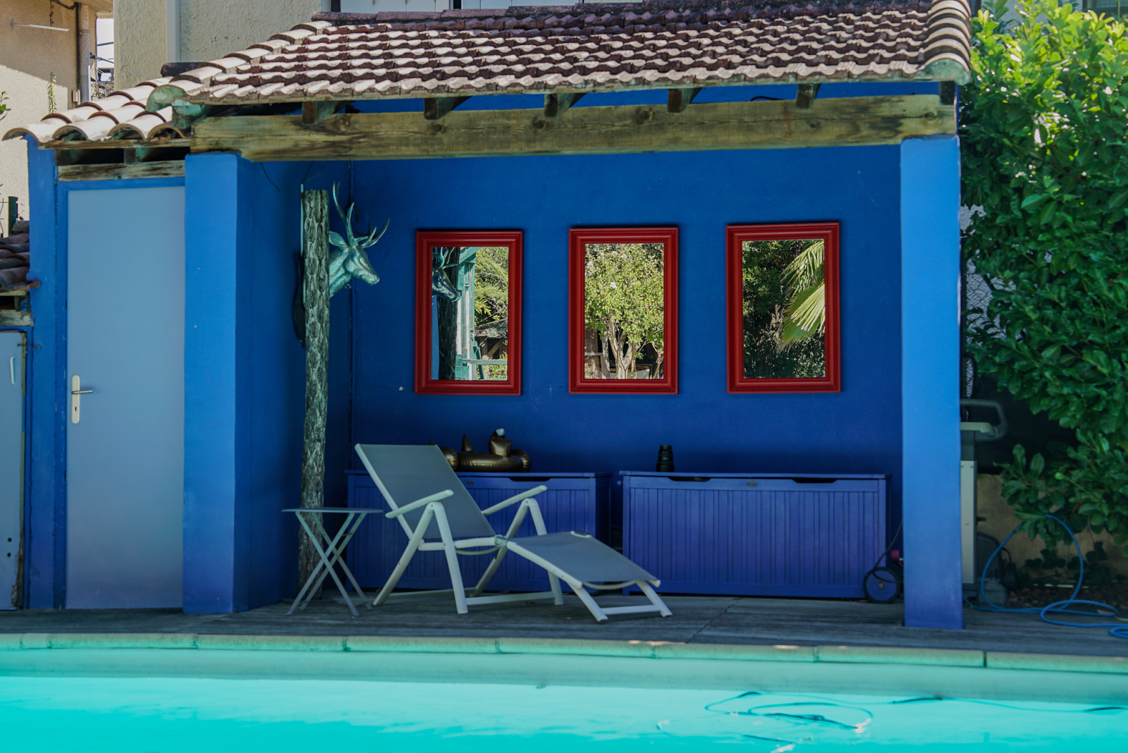 La piscine est chauffée par une pompe à chaleur. Les chambres à l’étage disposent de climatisation. L’isolation est performante. Le stationnement est bien géré, à l’entrée de la propriété avec la possibilité de garer au moins 3 véhicules et un garage couvert. Ce parking est bordé d’arbres.