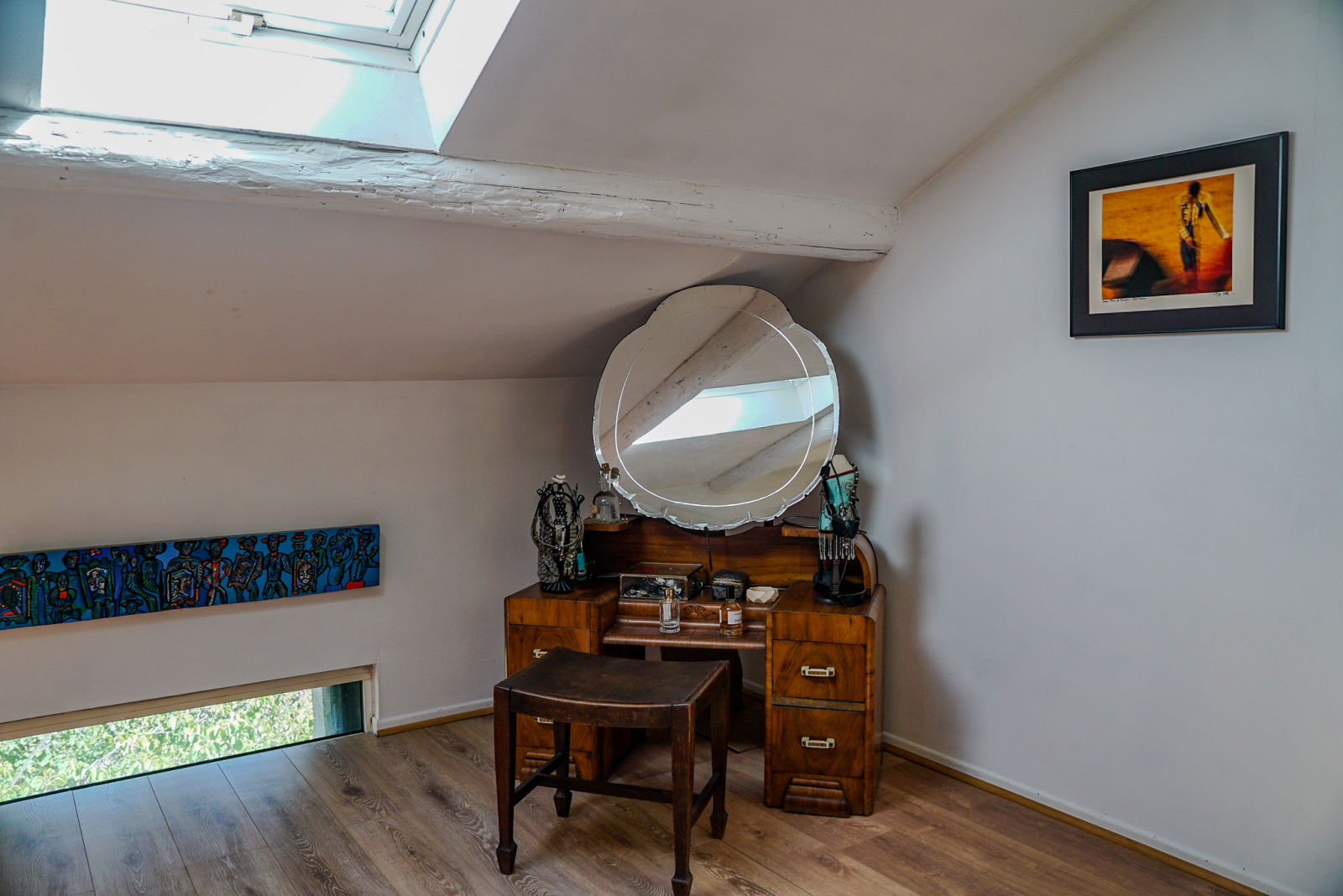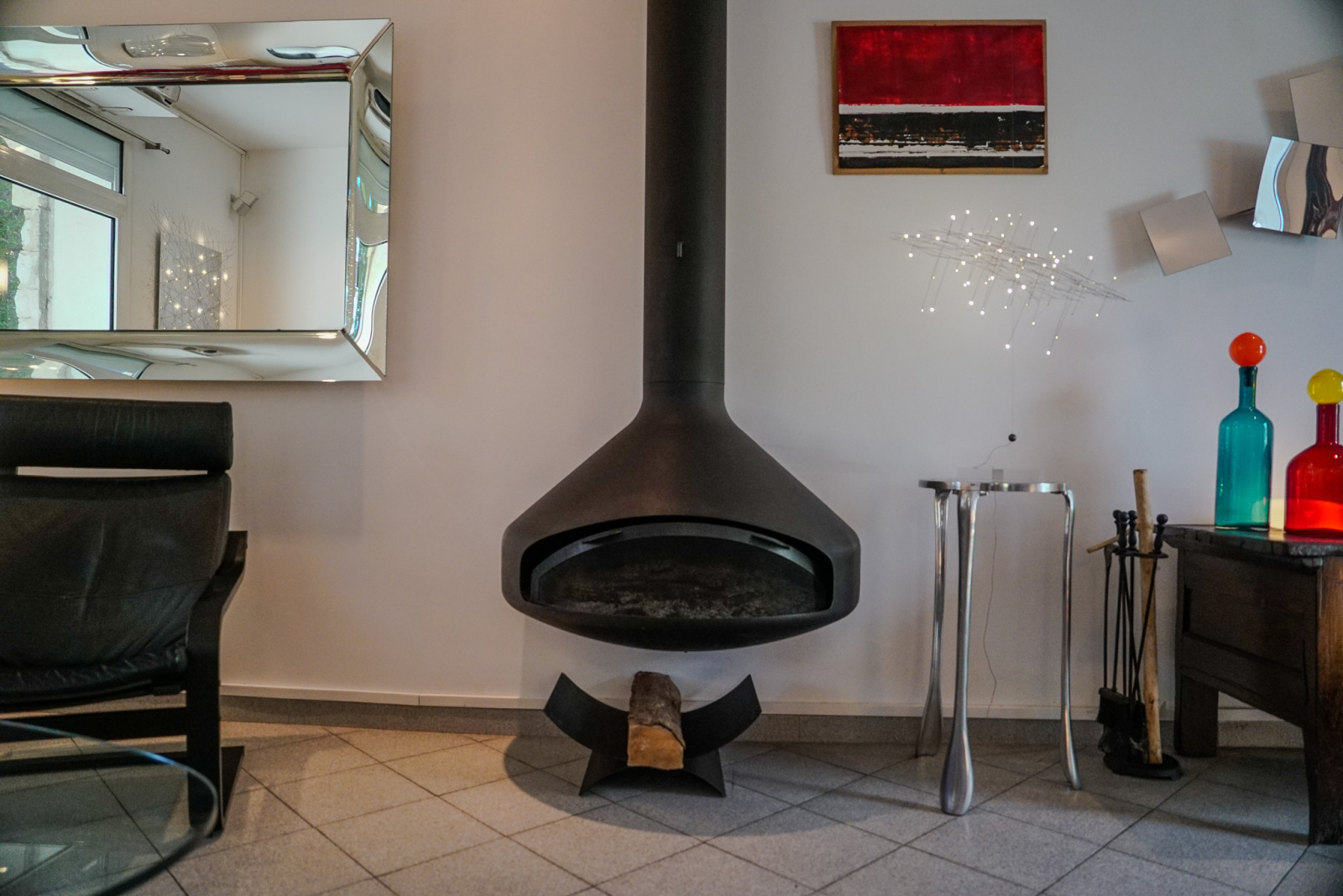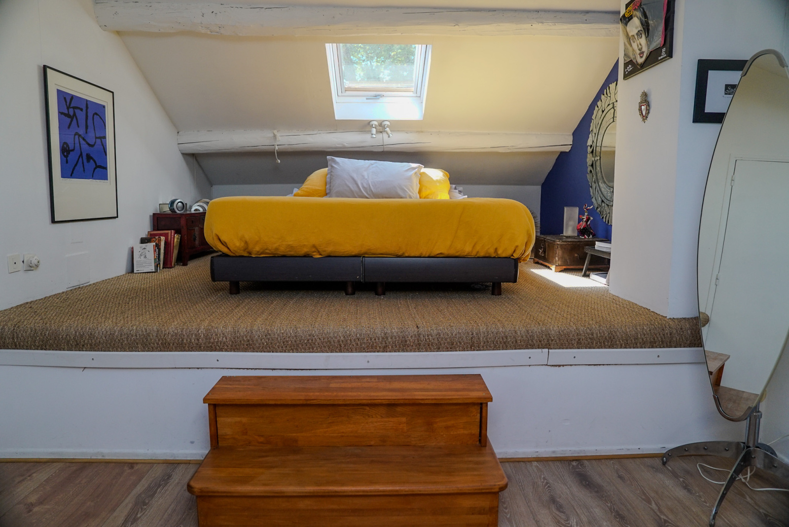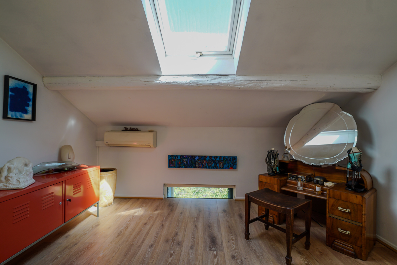 Les matériaux anciens et modernes sont de grande qualité. Il y a dans le salon une cheminée Focus qui souligne la tension ancien-moderne. Quatre chambres, deux salles de bains, deux espaces de travail dont un indépendant et traversant avec accès depuis la rue et vue sur le jardin pouvant accueillir profession libérale, atelier, studio, etc…